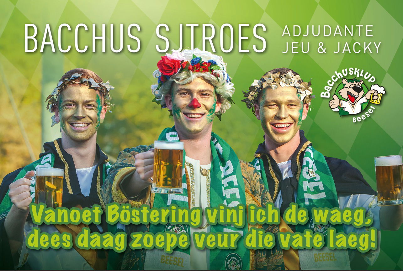 Ein Bacchusklup?! Wat is un Bacchusklup wearde der gevroag. Nou zei Jan: Bacchus is de god van de drank. En Bacchus mit zien klup lupt als un roeije droad door de vasteloavendj en trekt zich nurges get van aan. (toet op zekere heugte)